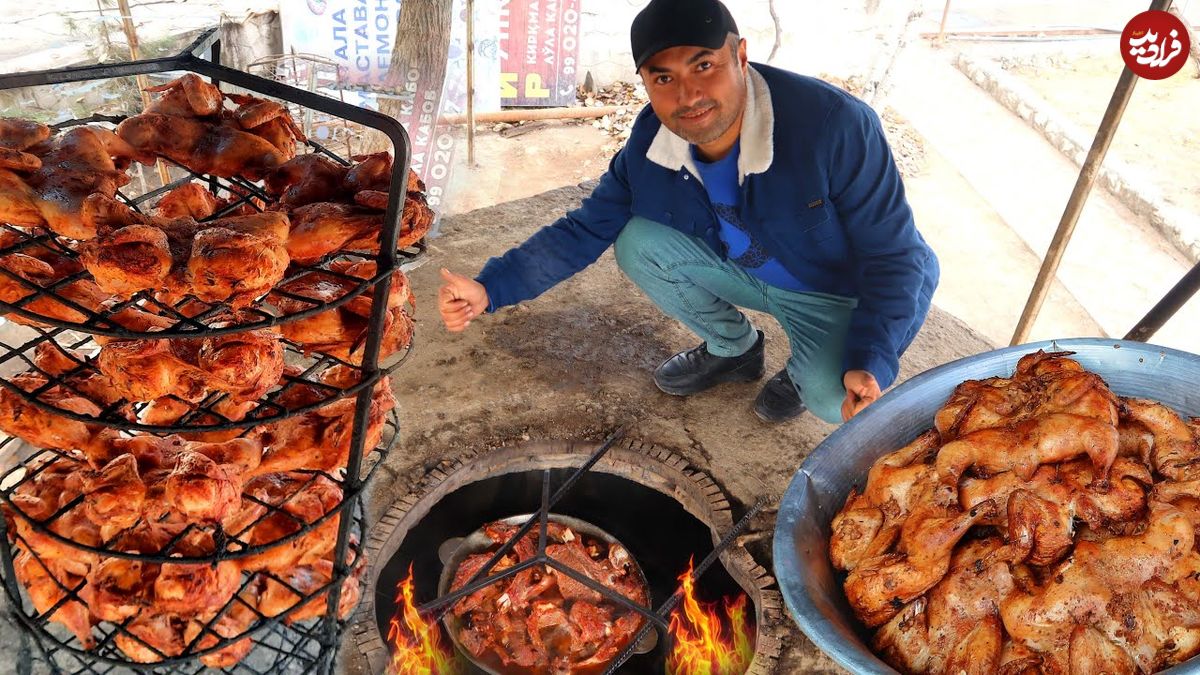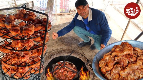 ببینید| غذای خیابانی در ازبکستان؛ کباب کردن 20 مرغ کامل در تنور زیر زمینی در تاشکند