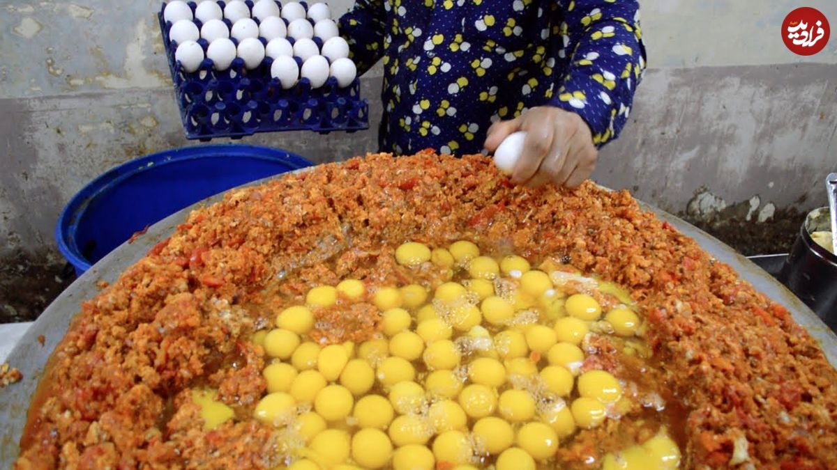 ببینید| غذای خیابانی در هند؛ پخت املت سنتی با 240 تخم مرغ، سبزیجات و کره در بمبئی