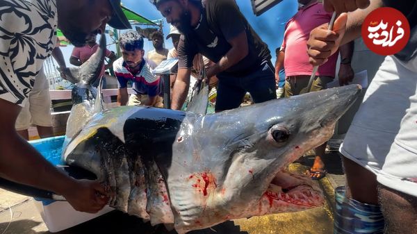 ببینید| صید تعداد زیادی کوسه گاوی و ببری و برش زدن آن ها در بندری در سریلانکا