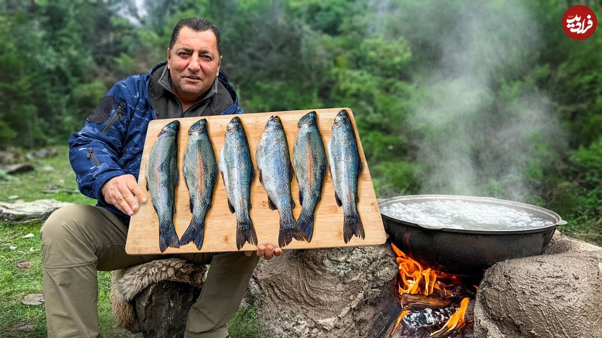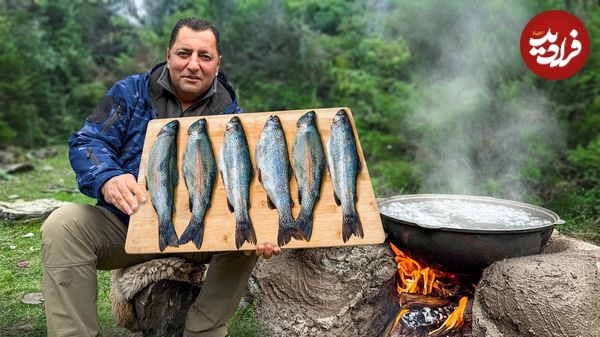 ببینید| غذای روستایی در آذربایجان؛ صید ماهی و کباب کردن آن در کوهستانی زیبا