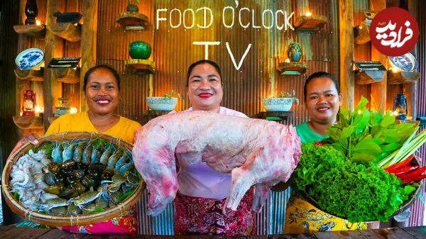 ببینید| غذای روستایی در سنگاپور؛ پخت بز کامل پرشده با میگو، خرچنگ، حلزون و اختاپوس