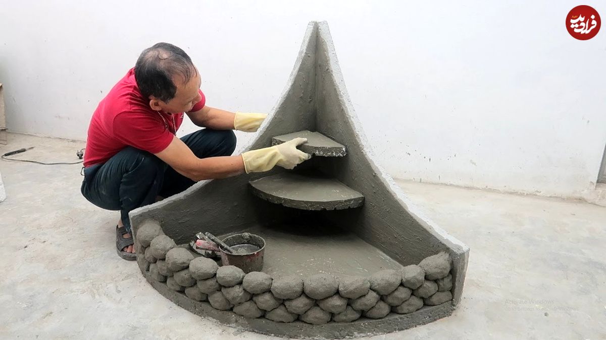 ببینید| مراحل ساخت یک حوض آب زیبا با سیمان و یونولیت به روش استاد چینی