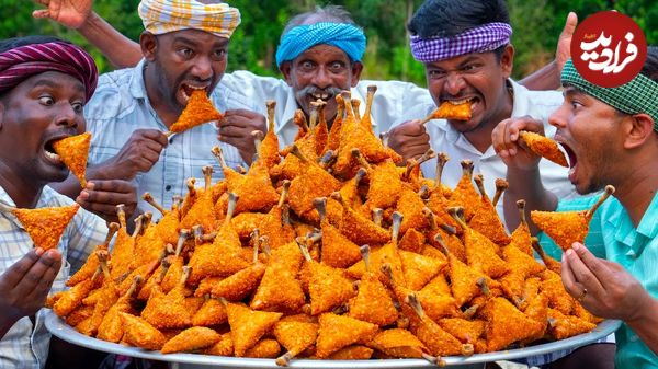 ببینید| غذای روستایی در هند؛ تهیه سمبوسه با مرغ سرخ شده در طبیعت