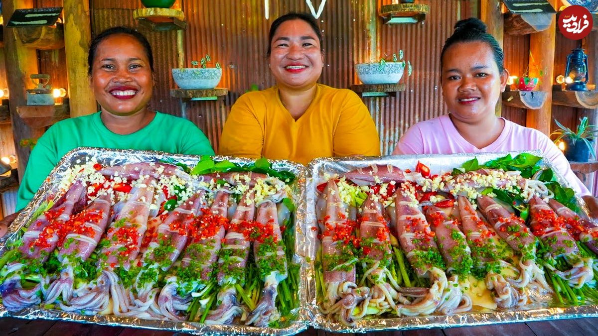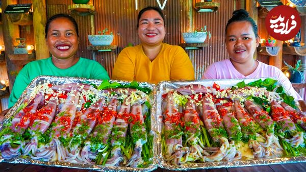 ببینید| غذای روستایی در سنگاپور؛ پخت ماهی مرکب در خاک رس و کاه