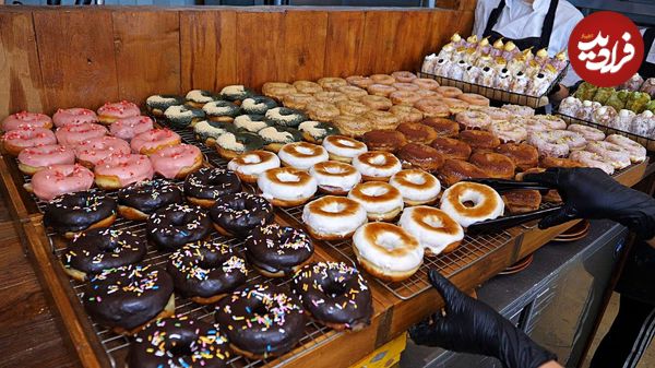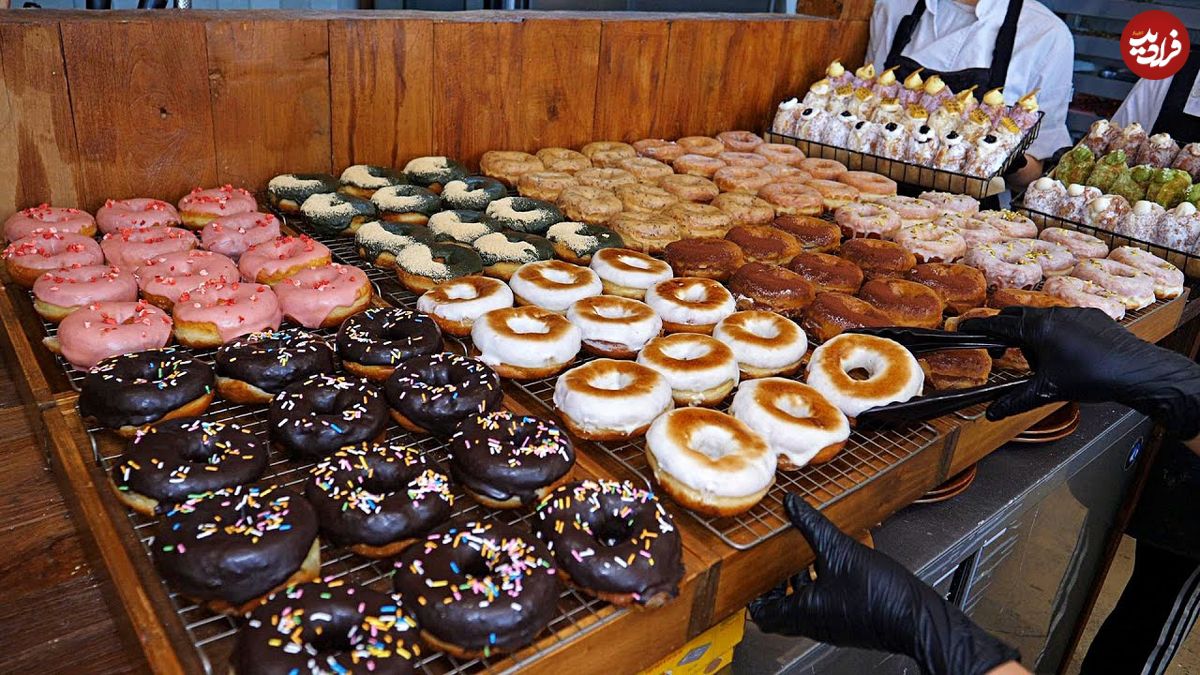 ببینید| غذای خیابانی در کره؛ پخت انواع دونات توسط قنادی ماهر در سئول