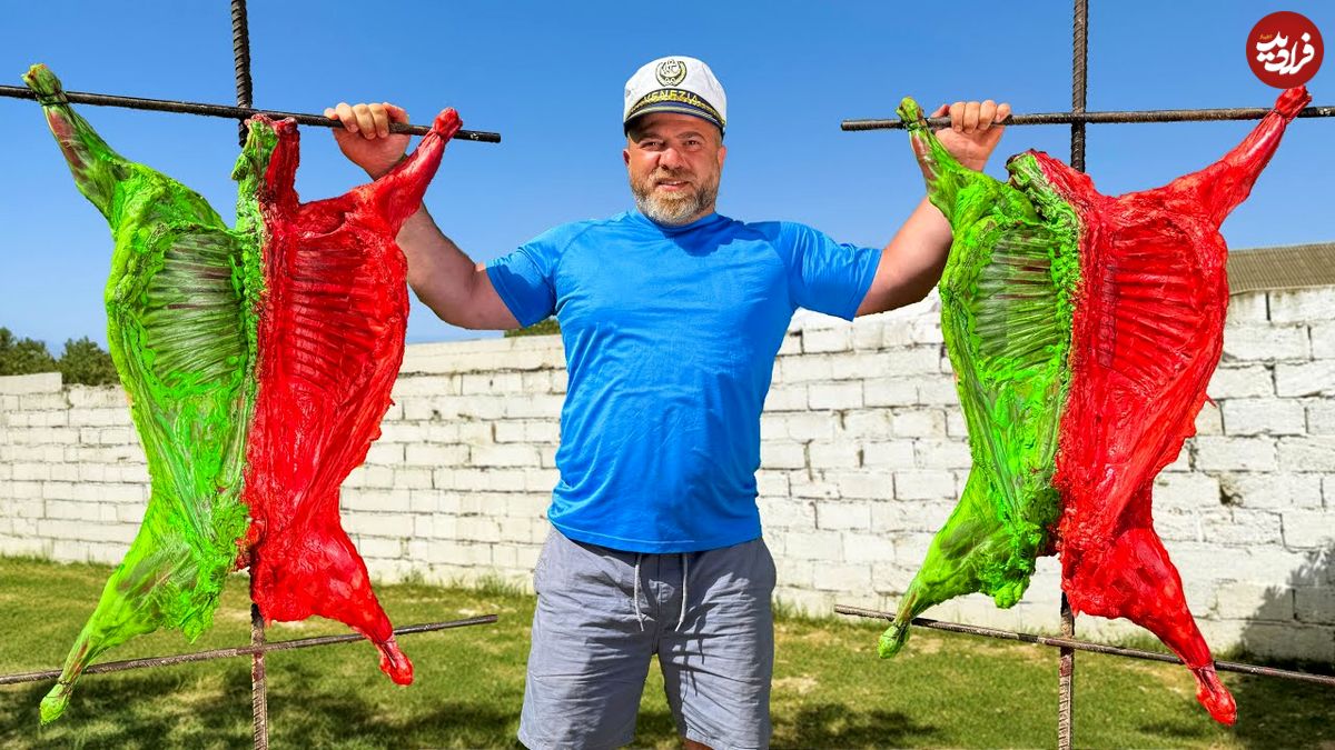 در این ویدئو یک آشپز ماهر اوکراینی ساکن یکی از روستاهای آذربایجان را می بینید که یک بره و ماهی خاویاری کامل را کباب می کند.