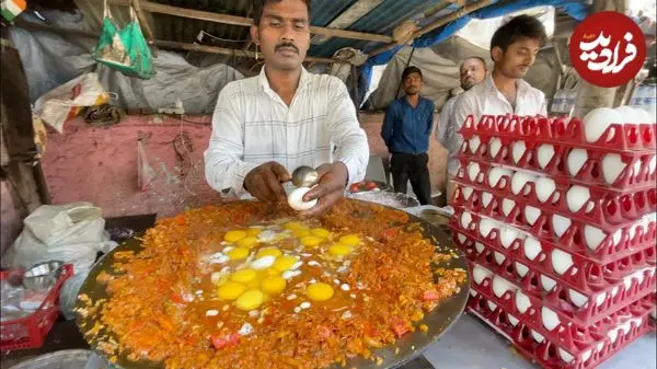 ببینید| غذای خیابانی در هند؛ سرعت و مهارت آشپز خیابانی در پخت املت سبزیجات در بمبئی