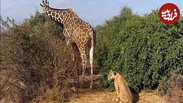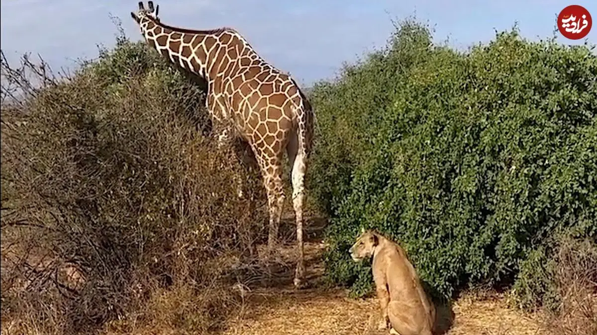 ببینید| تلاش عجیب «شیر تنها» برای شکار زرافه!