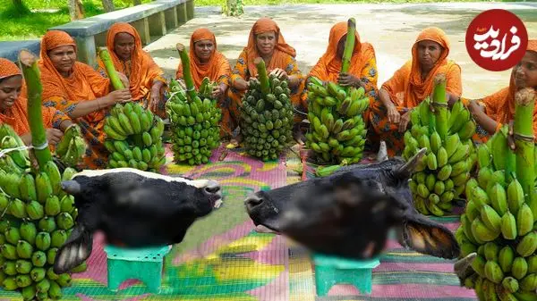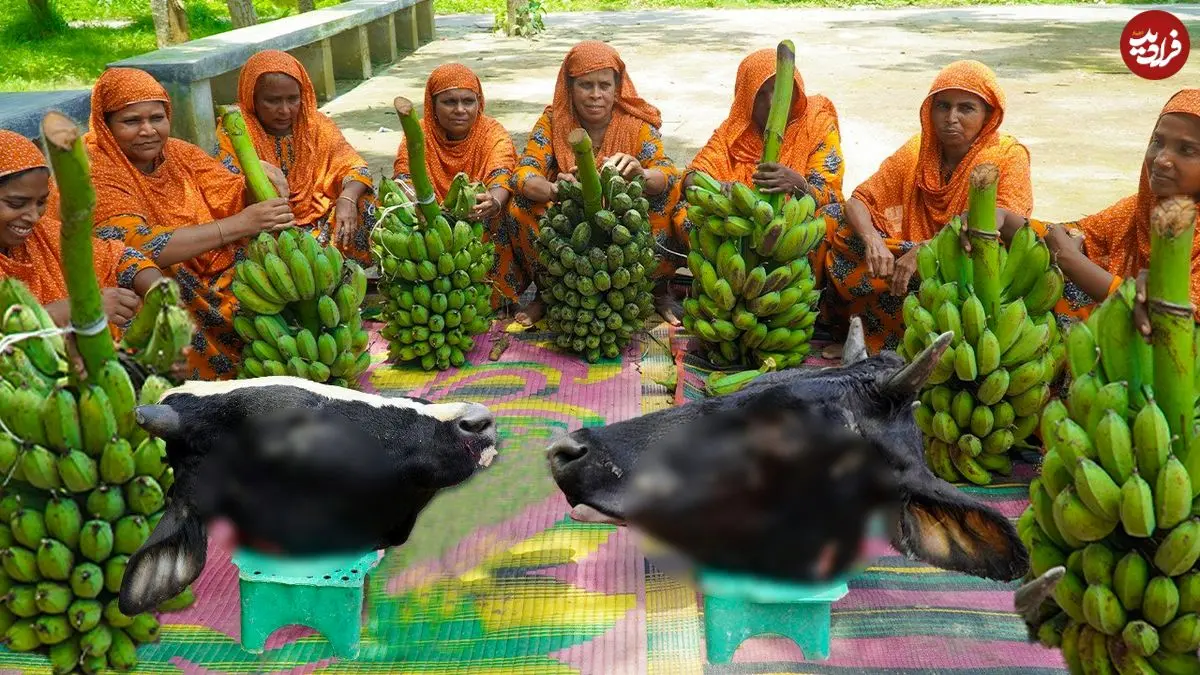 در این ویدئو تعدادی از بانوان ساکن روستایی در هند را می بینید که با موز و 2 دست کله پاچه گاو، یک خورشت کاری سنتی درست می کنند.