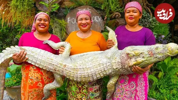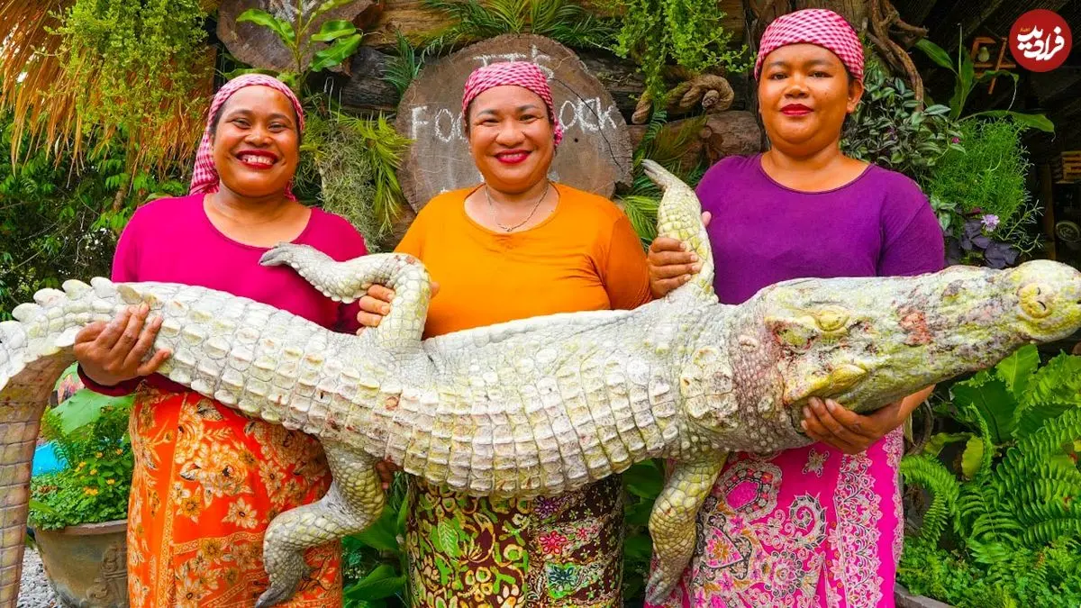 در این ویدئو 3 بانوی آشپز ساکن یکی از روستاهای سنگاپور را می بینید که یک کروکودیل بزرگ را روی آتش کباب می کنند.
