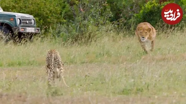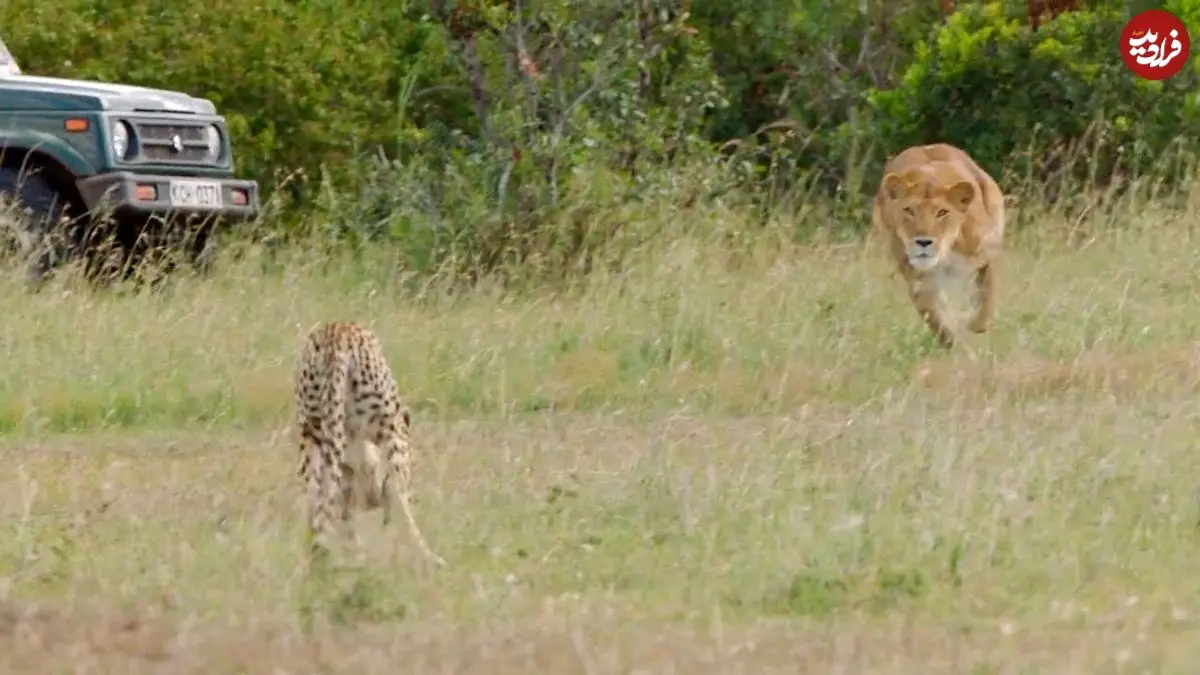 یوزپلنگ توسط یک شیر ماده مورد حمله قرار گرفت، اما توانست شیر ماده را منحرف کند تا توجه او را از تولههایش دور کند، که در این کار موفق شد. این صحنه ها در پارک ملی ماسایی مارا در کشور کنیا ضبط شده است.