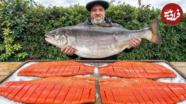 ببینید| غذای روستایی در آذربایجان؛ کباب ماهی سالمون در طبیعت