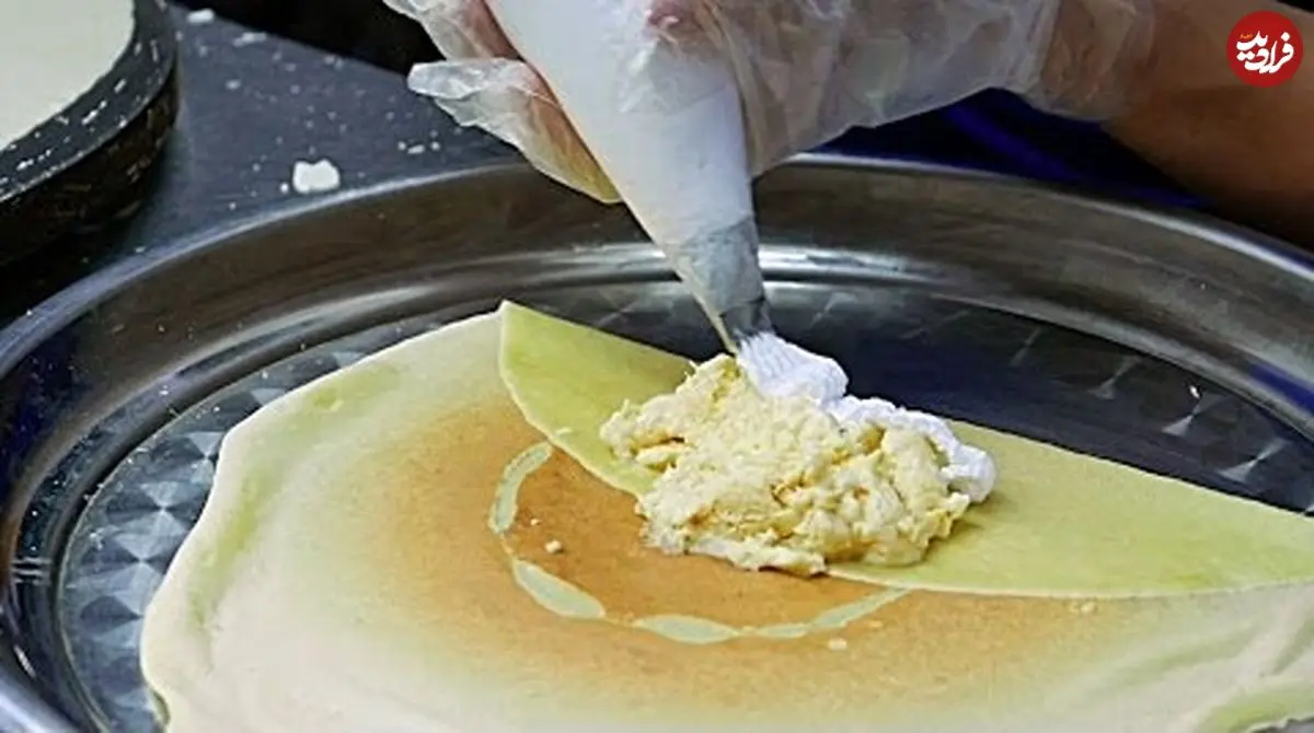 ببینید| غذای خیابانی در ویتنام؛ تهیه پنکیک با دوریان و موز در هانوی