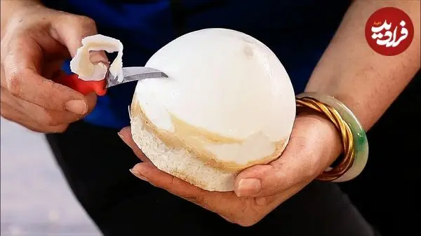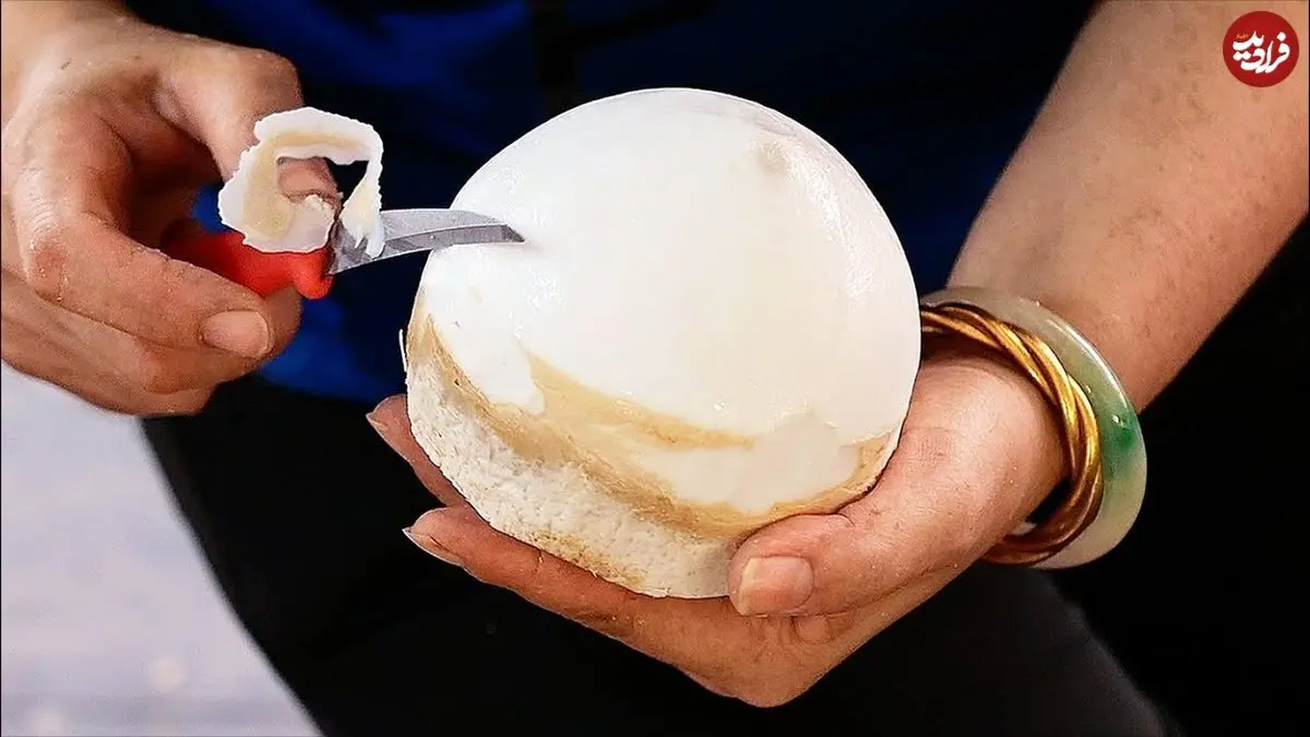 ببینید| غذای خیابانی در تایلند؛ هنر فروشنده های خیابانی در برش زدن نارگیل در بانکوک