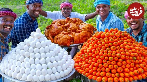 ببینید| غذای روستایی در هند؛ پخت املت با هویج و تخم مرغ در طبیعت