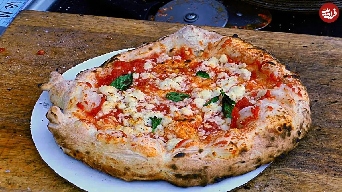 ببینید| غذای خیابانی در آمریکا؛ تهیه پیتزا پپرونی و مارگاریتا در نیویورک