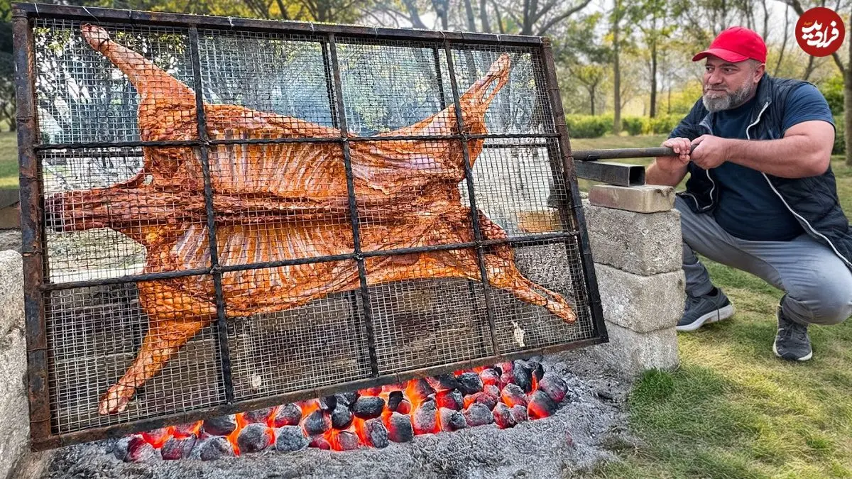 ببینید| غذای روستایی در آذربایجان؛ کباب کردن بره کامل به روشی متفاوت