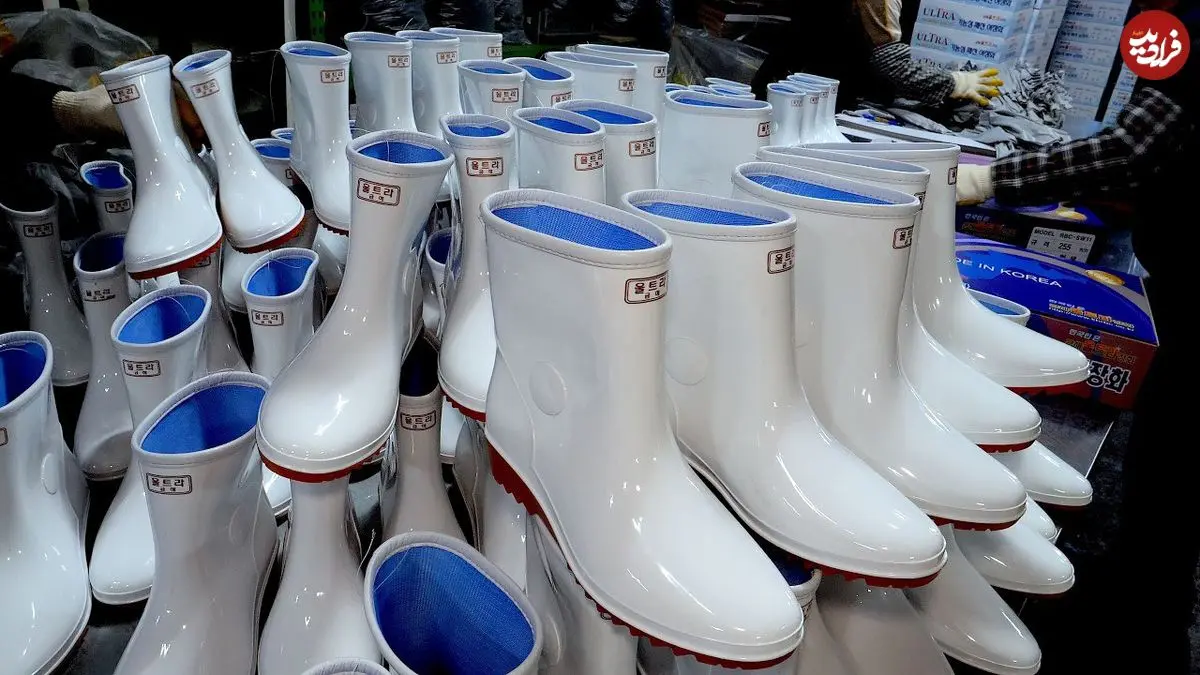 ببینید| فرآیند تماشایی تولید چکمه در کارخانه ای در کره جنوبی