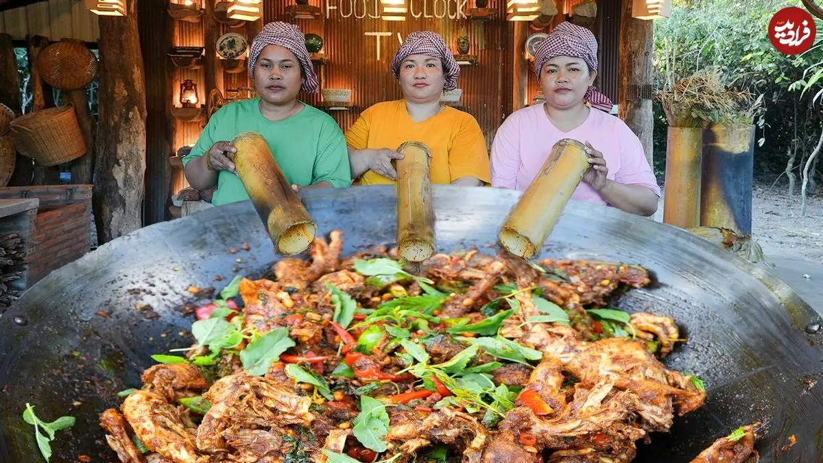 در این ویدئو 3 بانوی آشپز ساکن یکی از روستاهای سرسبز سنگاپور را می بینید که یک غذای خوشمزه با مرغ و سبزیجات در بامبو روی آتش درست می کنند.