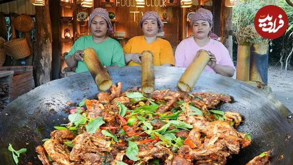ببینید| غذای روستایی در سنگاپور؛ پخت یک غذای سنتی با مرغ و سبزیجات در بامبو