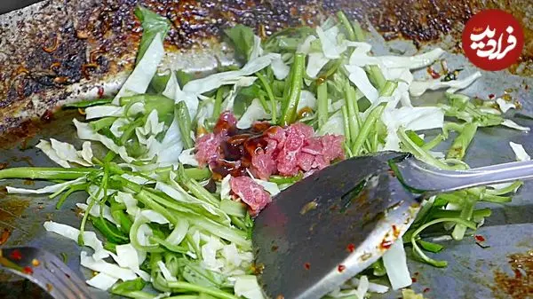 ببینید| غذای خیابانی در کامبوج؛ تهیه نودل سرخ شده با تخم مرغ و سبزیجات در سیم ریپ