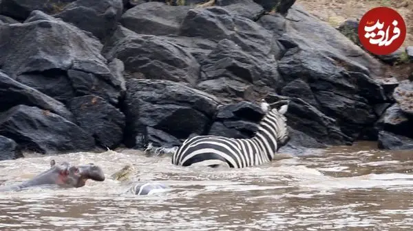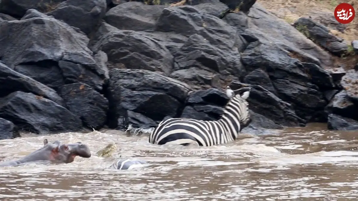 ببینید| فرار باورنکردنی «گورخر» از دست «تمساح» با کمک اسب آبی!