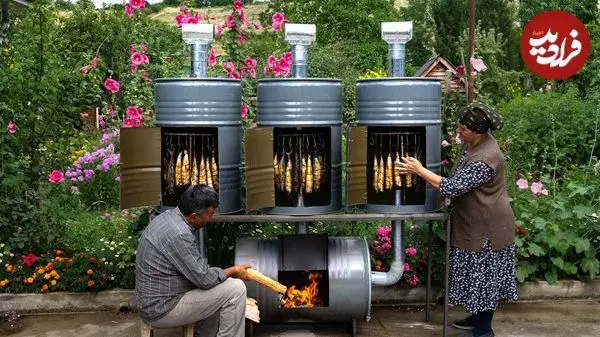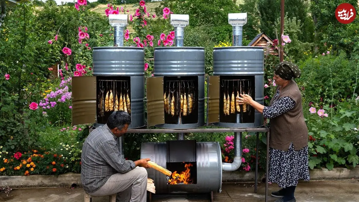 ببینید| غذای روستایی در آذربایجان؛ دودی کردن ماهی ماکرل در بشکه