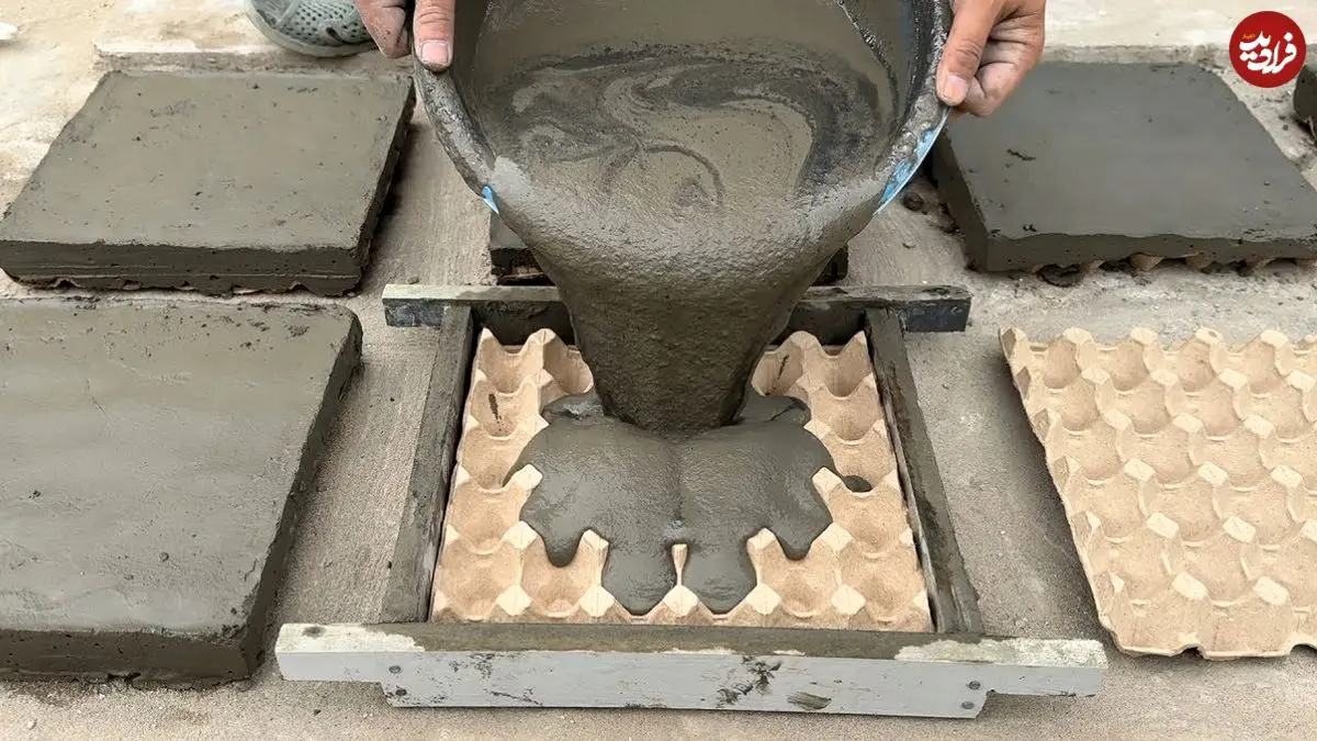 ببینید| ساخت گلدان و سنگ فرش با سیمان و شانه تخم مرغ
