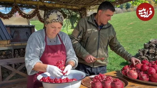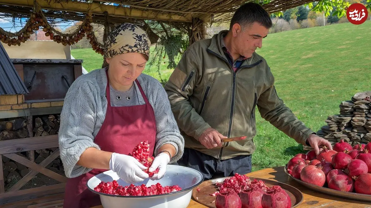 ببینید| غذای روستایی در آذربایجان؛ برداشت انار و تهیه آبمیوه و مربا با آن در روستایی کوهستانی