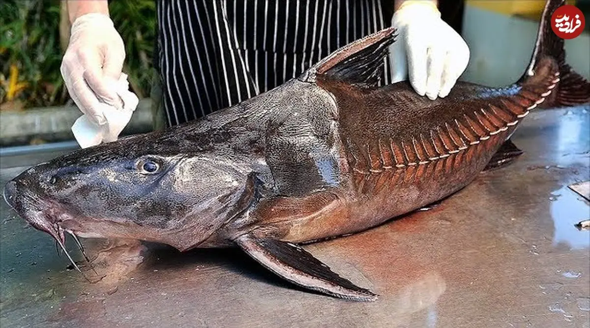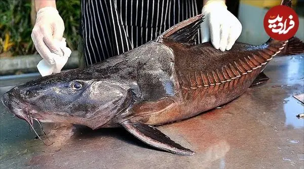 ببینید| غذای خیابانی در تایلند؛ برش حرفه ای گربه ماهی و تهیه خورشت کاری با آن در بانکوک