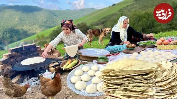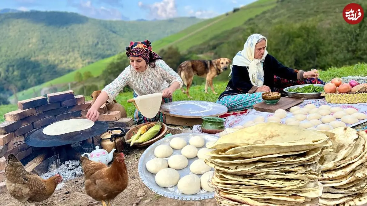 ببینید| غذای روستایی در ایران؛ پخت نان تافتون در تنور و سیب زمینی کبابی روی آتش