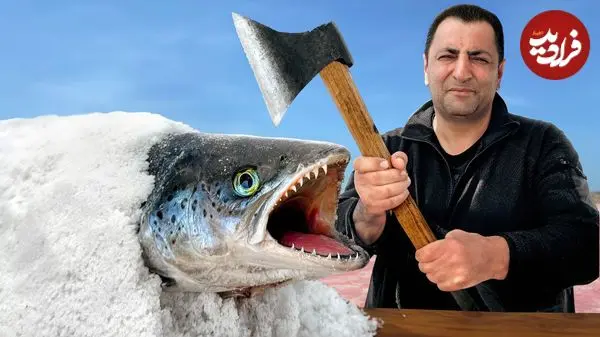 ببینید| غذای روستایی در آذربایجان؛ استخراج نمک از دریاچه و پخت ماهی با آن روی زغال