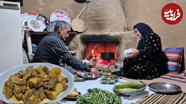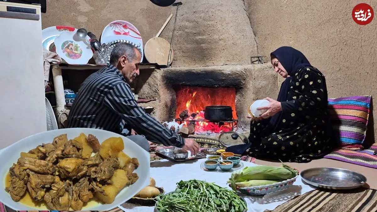 ببینید| غذای روستایی در ایران؛ پخت آبگوشت مرغ توسط زوج روستایی