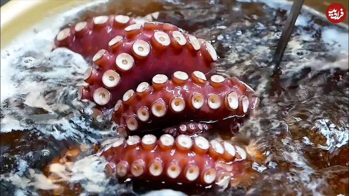 ببینید| غذای خیابانی در ژاپن؛ پخت یک غذا با هشت پای غول پیکر و سبزیجات در اوکیناوا