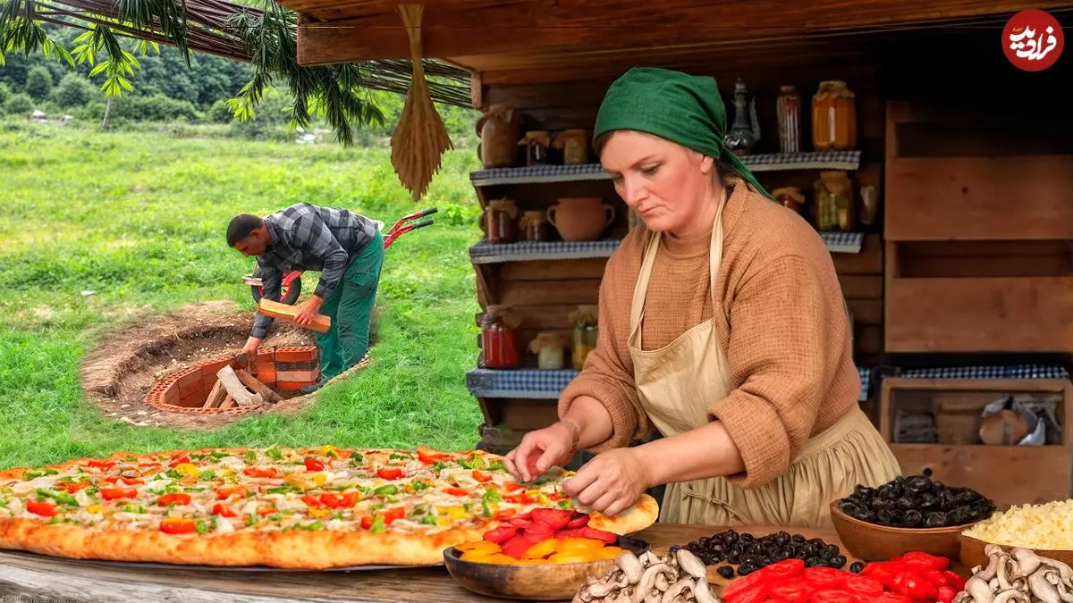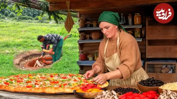 در این ویدئو یک زوج ساکن یکی از روستاهای زیبای آذربایجان را می بینید که یک پیتزای غول پیکر را در تنوری زیر زمینی در طبیعت درست می کنند.