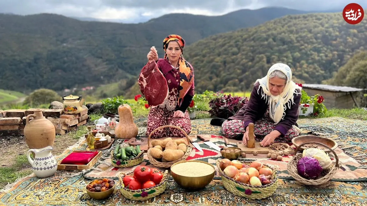 ببینید| غذای روستایی در ایران؛ پخت کباب تابه ای با پلو در کوهستان