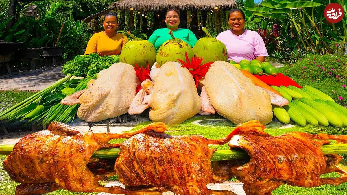 ببینید| غذای روستایی در سنگاپور؛ کباب اردک به روش متفاوت سه بانوی روستایی