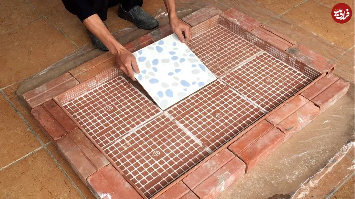 ببینید| فرآیند ساخت یک میز پذیرایی زیبا با آجر، سیمان و کاشی به روش استاد چینی