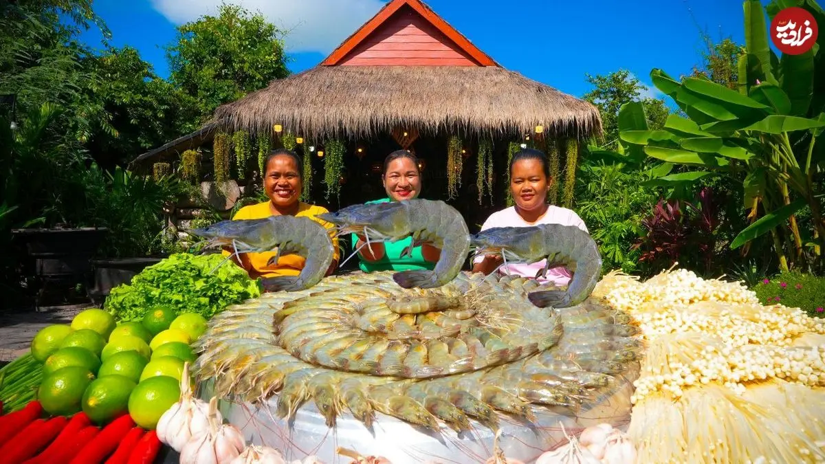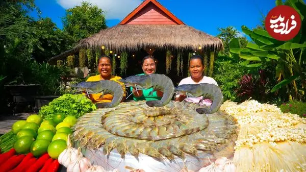 ببینید| غذای روستایی در سنگاپور؛ پخت میگوی بخار پز با قارچ در طبیعت روستا
