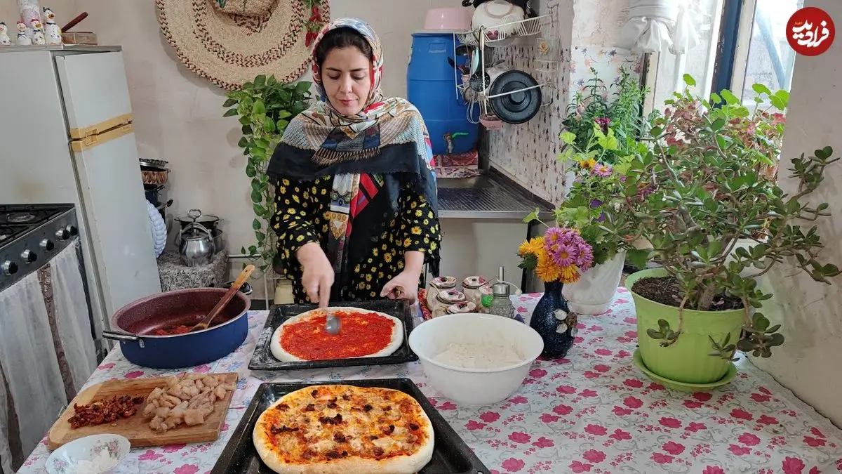 ببینید| غذای روستایی در ایران؛ تهیه پیتزا با پنیر خانگی