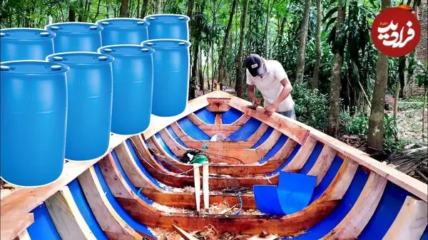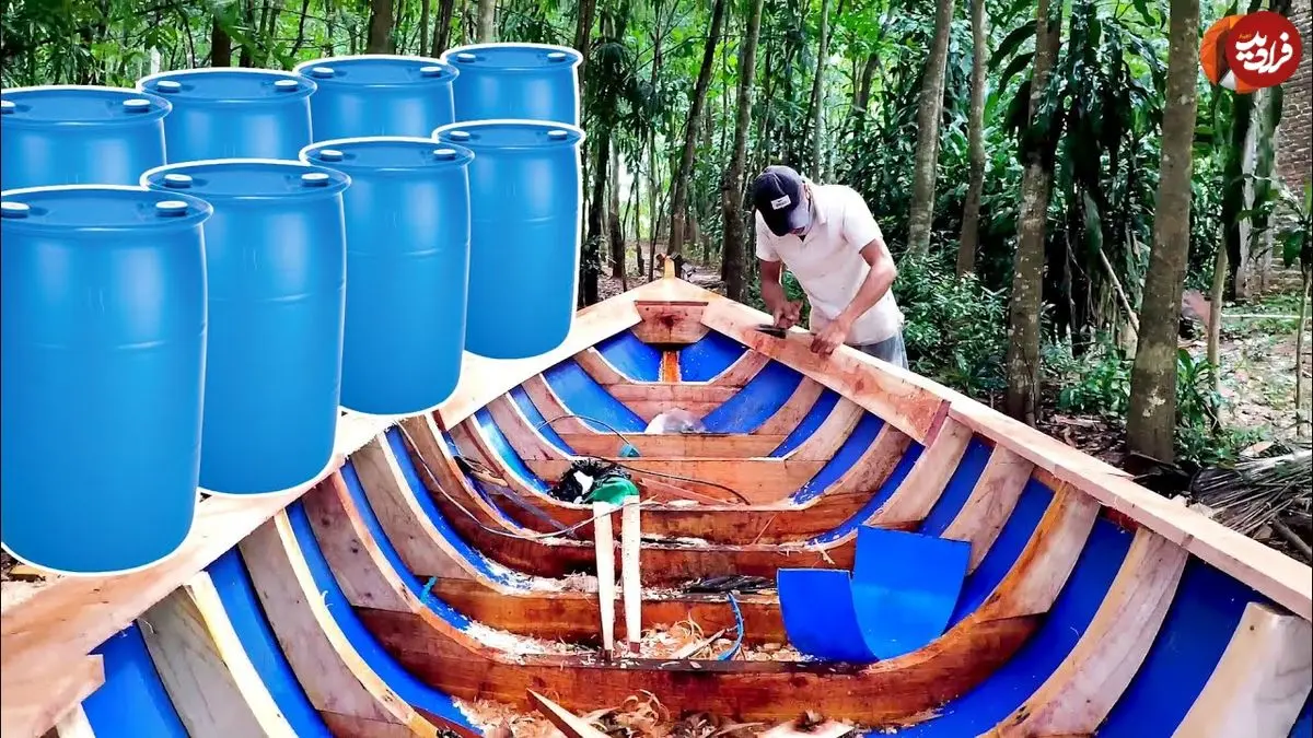 ببینید| مراحل ساخت یک قایق خلاقانه با بشکه پلاستیکی و چوب در اندونزی