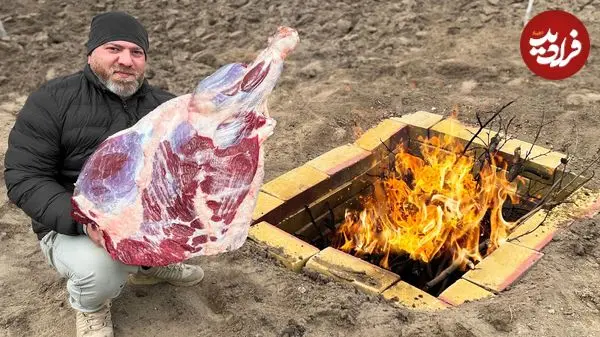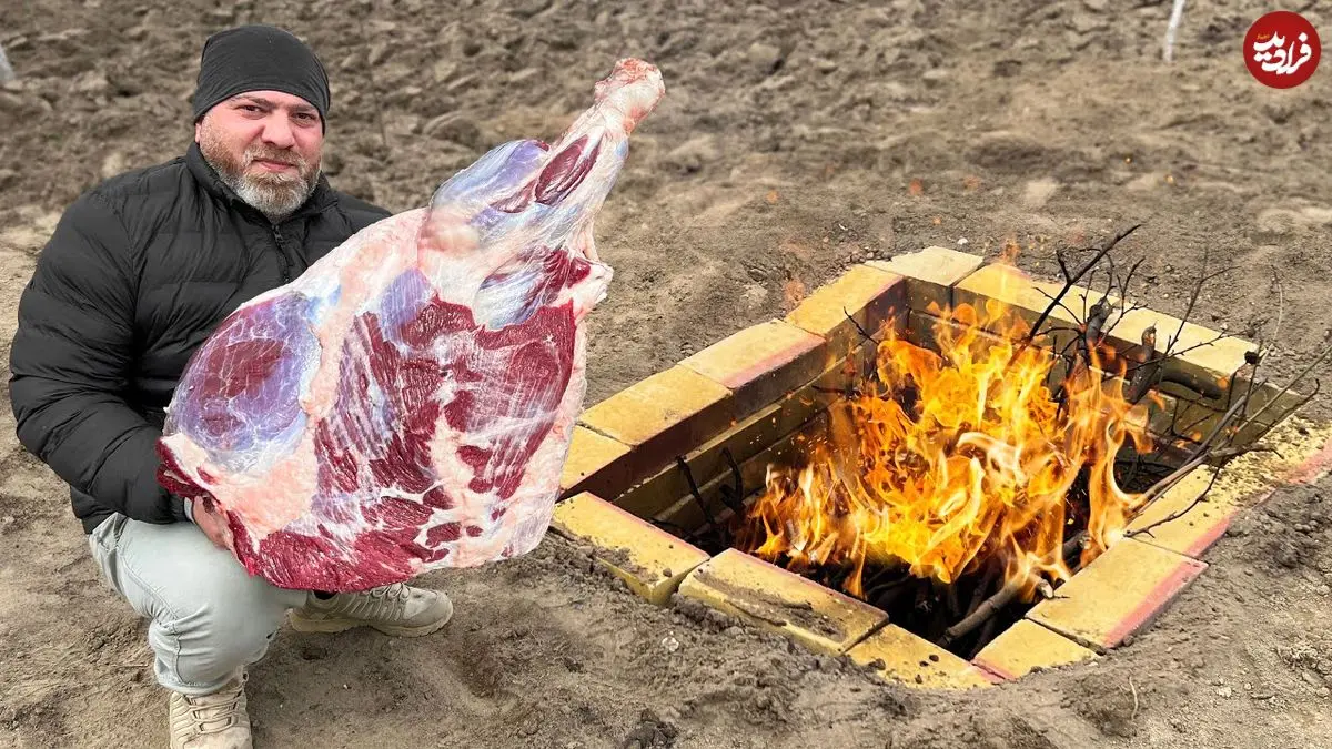 ببینید| غذای روستایی در آذربایجان؛ کباب کردن ران بزرگ گاو در تنور زیر زمینی