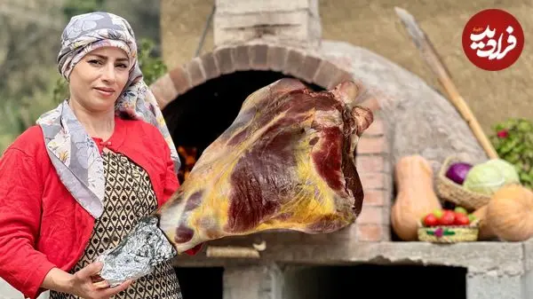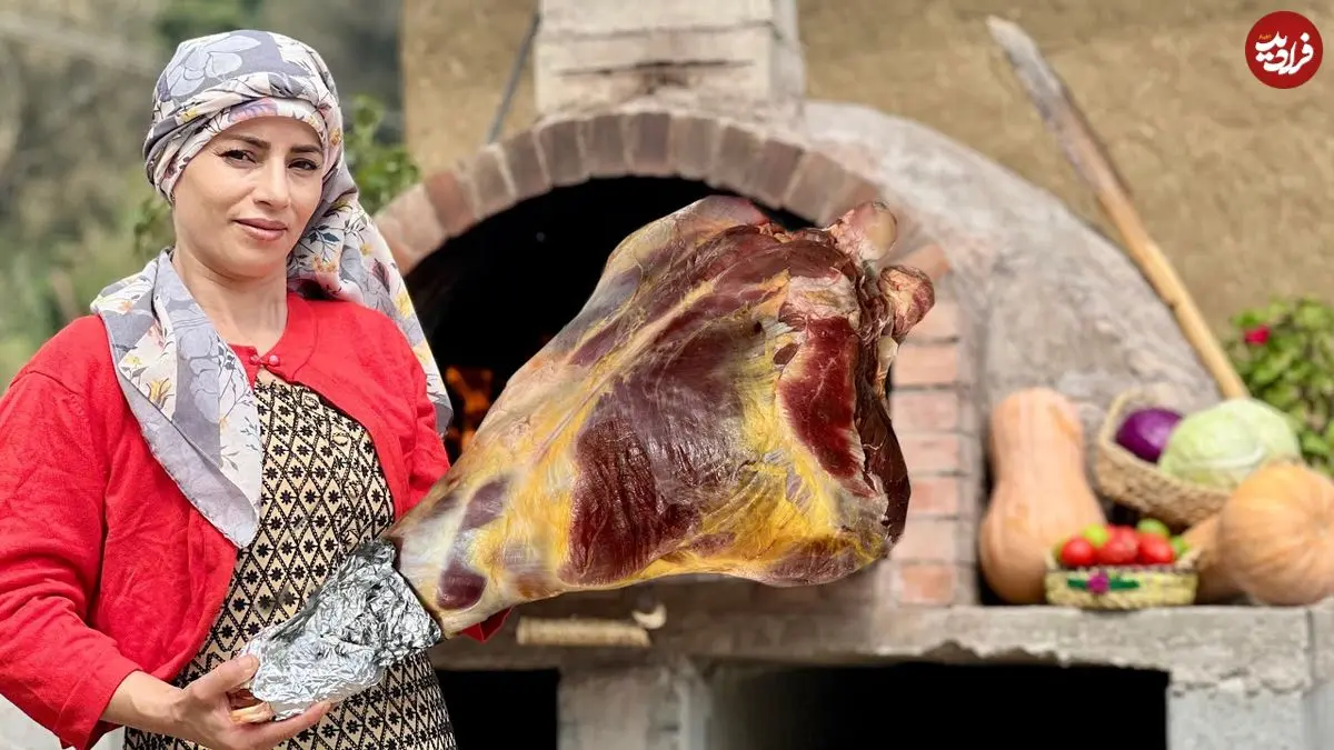 ببینید| غذای روستایی در ایران؛ کباب کردن ران گاو در تنور همراه با پخت نان و سیب زمینی