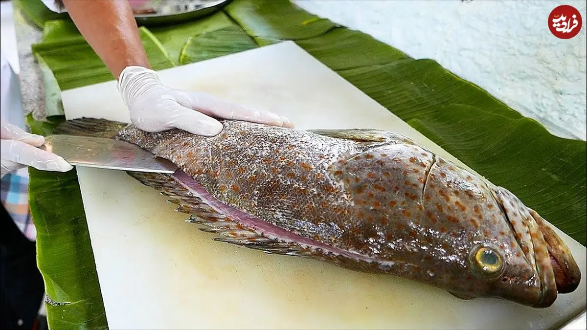ببینید| غذای خیابانی در تایلند؛ ماهی گروپر کبابی با سبزیجات در بانکوک