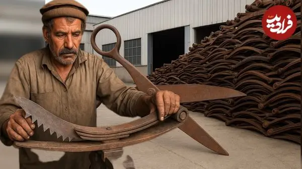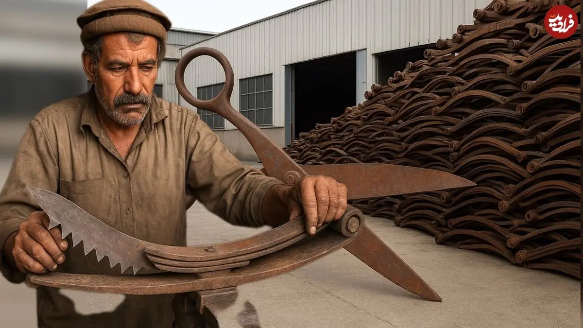 ببینید| مراحل تولید قیچی آهن‌بر از طریق بازیافت فنرهای قدیمی خودرو در پاکستان