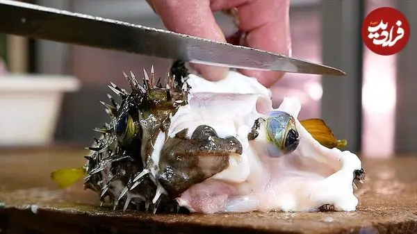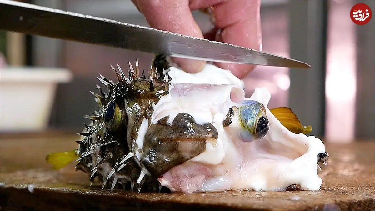 ببینید| غذای خیابانی در ژاپن؛ برش و تهیه دو نوع غذا با ماهی بادکنکی سمی در اوکیناوا