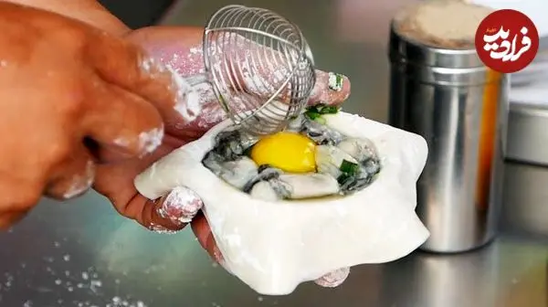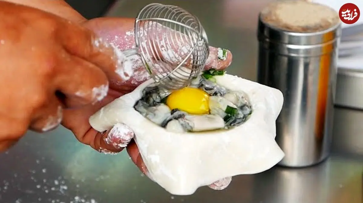 ببینید| غذای خیابانی در تایوان؛ تهیه یک غذای سنتی با صدف، تخم مرغ و پیازچه در تایپه