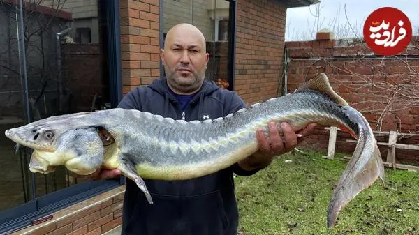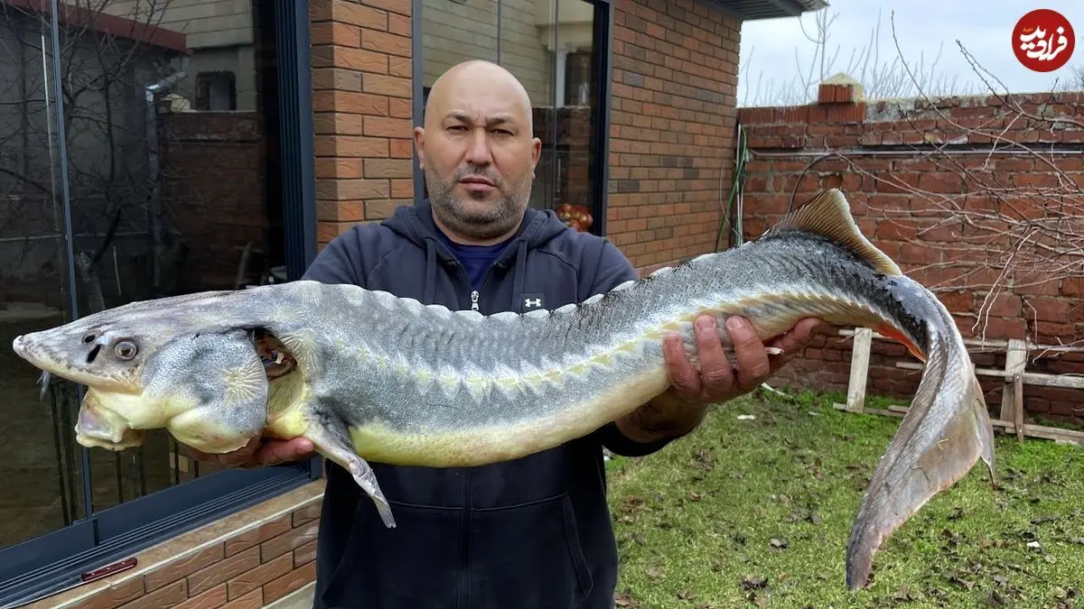 ببینید| غذای روستایی در روسیه؛ کباب یک ماهی خاویاری بزرگ در تنور