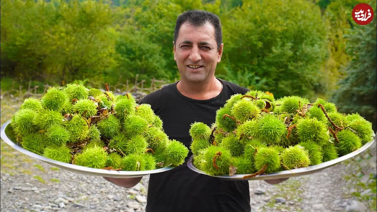 ببینید| غذای روستایی در آذربایجان؛ پخت یک غذای سنتی با شاه بلوط و گوشت بره