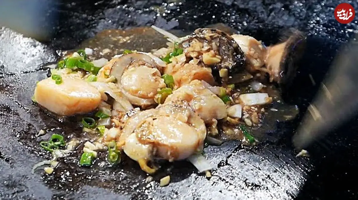 ببینید| غذای خیابانی در تایوان؛ پخت یک غذای محبوب با صدف و تکه های ماهی در تایپه